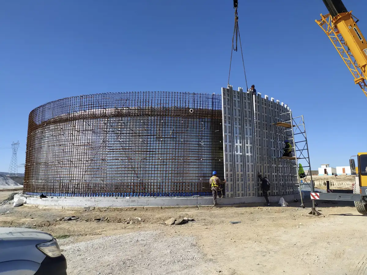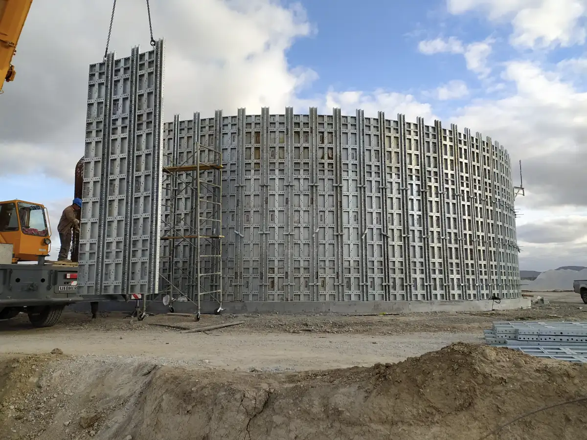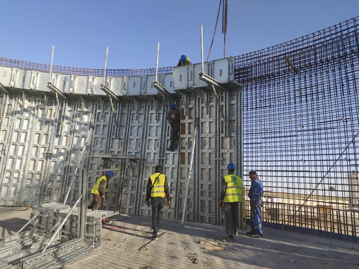 Quanto à CARLDORA, foi capaz de conceber e fabricar para nós um sistema capaz de responder às minhas expectativas e, além disso, o seu sistema circular não era um sistema de painéis, mas um sistema modular capaz de executar paredes rectas e desde a parede mais pequena até à parede maior em formas geométricas, variáveis e complexas. Cheguei mesmo a fazer colunas helicoidais gigantes na entrada do centro universitário de Zérada utilizando a mesma cofragem utilizada na construção da estação de tratamento de águas residuais OUM EL BOUAGUI.