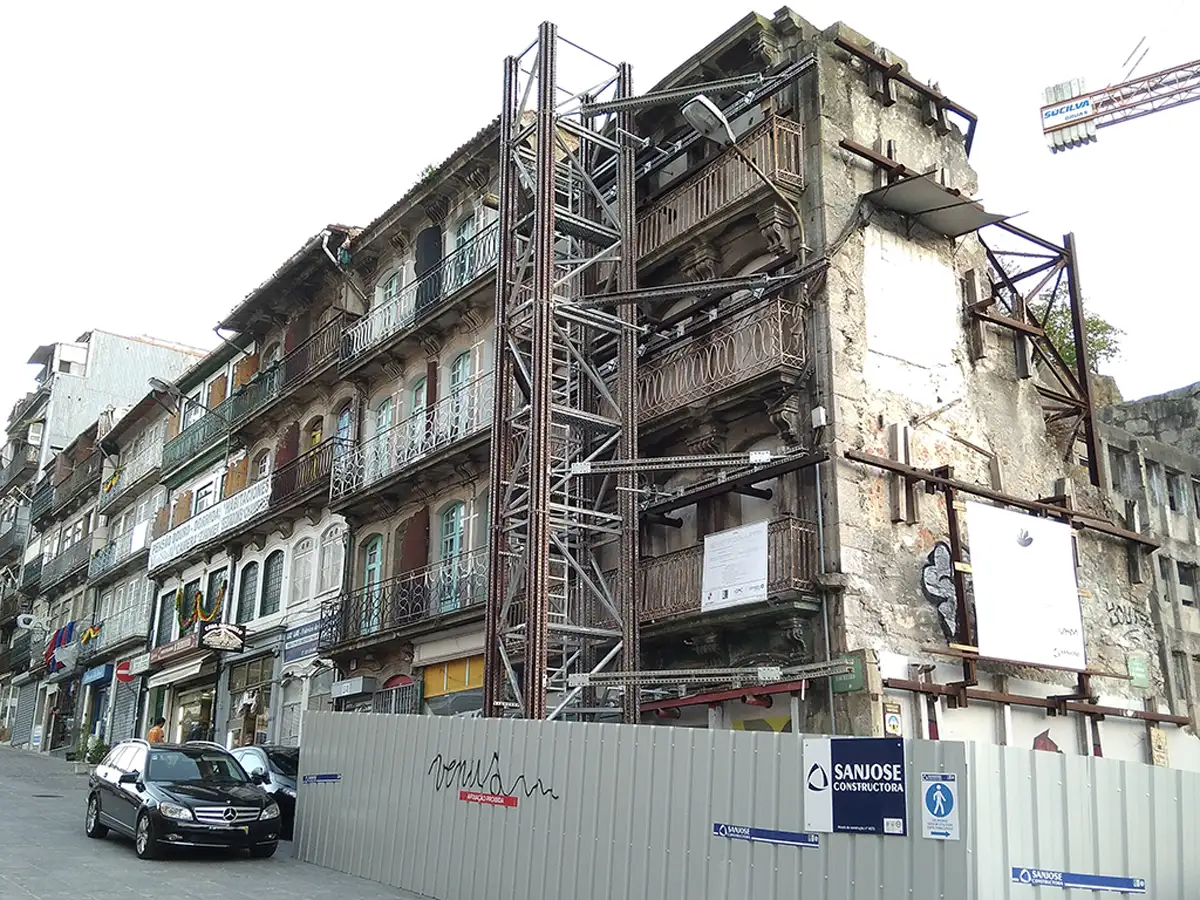 Sistema de Retención de Fachada - Muro Medio - 3 Niveles de Correas de Bloqueo Horizontales Bloqueadas con Vigas de Cimbra Carl H+ y Carl+.