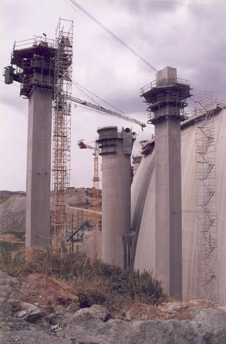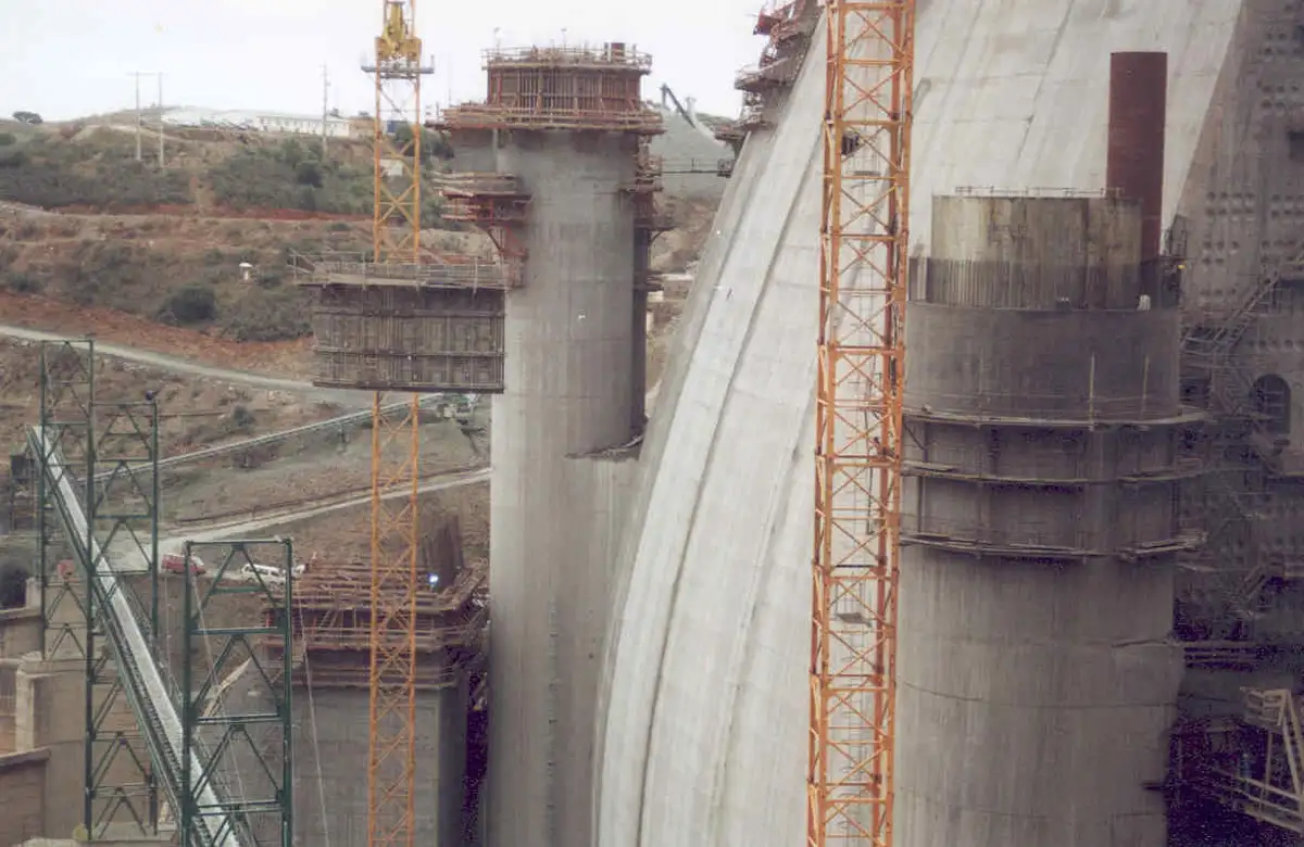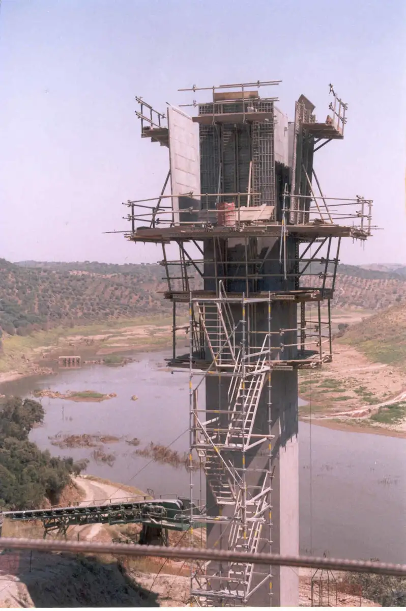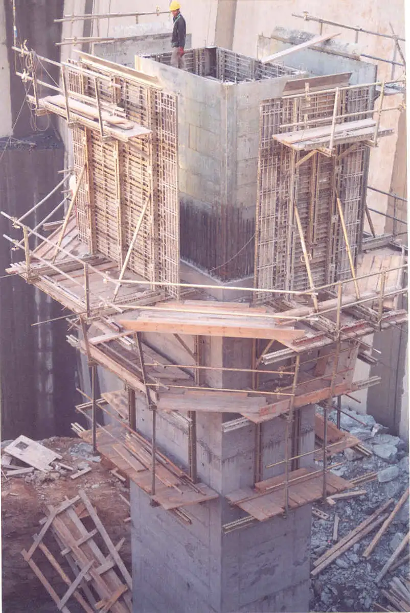 Cofragem Metálica Trepante Adaptável a Diversas Secções e Escoramentos Quick E.A.E Ø50/70 mm para a Construção das Torres Descarregadoras Meio-Fundo MF1 e MF2 e Pilares de Acesso